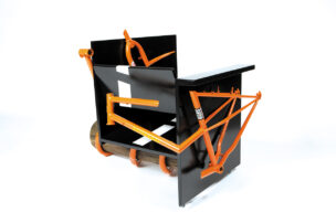 Umasi Chair XII (subtitled “Multi-Tasking 101X”) mdf, baltic birch, steel, telephone pole, bicycle frame 34" X 34" X 38" h 2009 Post navigation Umasi Bench X Umasi Table XVII